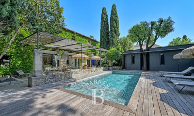In a quiet environment, with south exposure this furnished house (Luxury villa) 420 m² (about 4515 ft²), built in 1995, with a land size of 1800 m² (about 0,44 acres) contains 9 rooms including 3 bedrooms and 5 bathrooms. It is equipped with a living room 100 m² (about 1075 ft²), with dining room 30 m² (about 322 ft²), with a None, with a swimming pool, with a terrace, with 2 garages and with 4 parkings. Others : fireplace.