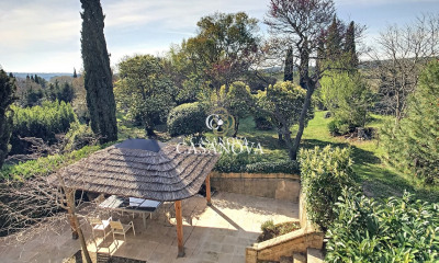 In a privileged setting near Pézénas, majestically overlooking the Etang de Thau, nestles a vast estate of over 14 hectares, 4 hectares of which are planted with AOP Picpoul de Pinet vines, renowned for their exceptional wines. Immersed in a beautiful natural environment, this characterful estate extends over some 1,200m2. At the heart of this 18th century estate, a main bastide of approx. 175 m² stands proudly in the shade of the umbrella pines, complemented by 6 independent dwellings from 3 to 5 rooms, each offering generous floor space from 90 to 160 m². Each carefully designed and fully-equipped accommodation has its own private terrace and opens onto a shaded courtyard and lush gardens. A wellness area with Sauna and Hammam is also available. The grounds feature two swimming pools, one of which is heated, with its own pool-house. The renovation of this property was carried out with authenticity in mind, highlighting noble materials such as natural stone floors and oak woodwork, creating a warm, refined atmosphere.