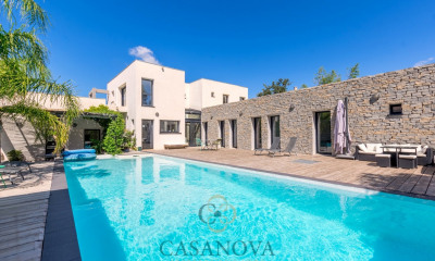 Saint Gély du Fesc, I invite you to discover a little treasure. Nestled on a fully landscaped plot of 1200m2, this Contemporary Villa of 230m2 of living space, facing south, its living rooms overlooking the swimming pool and the garden! This house is a haven of peace created to live in harmony in modern comfort. You will feel this atmosphere filled with positive vibes when you come to visit this place. Let yourself be tempted!!! You will appreciate its services, its volumes... File on request. AGENCE JNCA - Johan NAVARRO - 06 47 39 77 65 - Commercial agent RSAC No 518 935 812 - City of the registry: MONTPELLIER - More information on cif-montpellier.com (1762) COMPTOIR IMMOBILIER DE FRANCE - Plus d'informations sur cif-immo.com - « Les informations sur les risques auxquels ce bien est exposé sont disponibles sur le site Géorisques : www.georisques.gouv.fr »