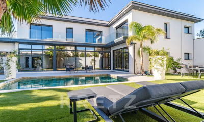PIERRES-BLANCHES IMMOBILIER® Le Cap d'Agde - PBI Collection Just a stone's throw from the Mediterranean coast, this architectural masterpiece stands out for its transparency and structural precision. The builder's vision here is rooted in a quest for longevity, creating a home which, through the purity of its lines, engages with the future whilst honouring the tradition of fine craftsmanship. This 170 m² villa, with its distinctive architectural style, strikes a subtle balance between bold volumes and fluid spaces. It stands at the heart of an 819 m² landscaped setting, where the harmony of materials creates a visual symphony the moment you step through the door. The bespoke layout reveals a delicate and light-filled structure, without lacking in character. The heart of the home beats to the rhythm of a spacious reception area where the open-plan kitchen invites conviviality. Large floor-to-ceiling windows blur the boundary between the interior and the shaded terrace. The right wing of the ground floor houses the private quarters: a magnificent, spacious suite, complete with a bathroom and a dressing room. Upstairs, beyond a glass façade with graphic accents, three bedrooms with en-suite bathrooms ensure perfect privacy for every guest. The outdoor space, a veritable organic landscape, showcases local and exotic plant species around a nine-metre-long swimming pool. The terrace, sheltered by a vast shading structure and accentuated by the clean lines of porcelain stoneware, stands out as a haven of serenity. Bonus: Completion of the works, scheduled for the first quarter of 2027, will include state-of-the-art technology, a fully integrated home automation system, a fibre-optic connection and a heat pump heating system. The garden has been designed to provide visual appeal without the hassle of time-consuming maintenance. The sale benefits from reduced notary fees and the security offered by ten-year and building damage insurance. Located ten minutes from the beaches and in the immediate vicinity of the Cap d'Agde golf course, this property offers exceptional accessibility, just five minutes from the A9 motorway. Our Opinion: Solstice d'Été® This residence is an ode to the unique beauty of the Mediterranean, crafted by master builders of the highest calibre. It offers a living environment where the only limit seems to be that of the imagination. ‘An Authentic and Contemporary Vision of Luxury Real Estate.' Franck Ballester ® ANY INSPIRATION, MODIFICATION OR REPRODUCTION IS PROHIBITED - REGISTERED TRADEMARK File available on request Contact +33 (0)4 67 70 07 87