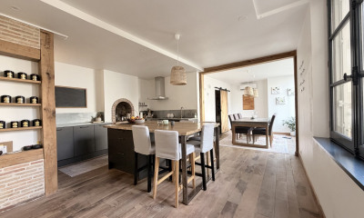 Between Tours and Vendôme, a fully renovated former mill, with outbuildings and 1.3-hectare tree-filled grounds. From the centre of the village, a narrow street leads to the property. There are two entrance gates, one to the front and one to the rear of the buildings. The first opens onto a parking area and a car port where two vehicles can be parked. A drive runs through part of the grounds, through which the River Brenne flows, and leads around the former mill to a patio enclosed by a wooden fence with a gate in front of the building, which is made up of two edifices and was built with rubble stone covered with rendering. The different sized windows have brick frames, which is typical of the region, and the large patio doors on the ground floor let light stream generously into all the rooms. A former lean-to standing against the gable end has been transformed into a summer kitchen and is glazed on three sides. Five bedrooms and a vast office space are spread over the first two floors. The attic level forms a single room and the whole building has recently been fully renovated. Next to the mill, an outbuilding with a bread oven could be converted, as could the brick outbuilding alongside the narrow street. Opposite the mill, a barn is used for storing gardening material and also serves as a workshop. The banks of the mill race have been planted with flower beds and the grounds are very well kept, with a variety of trees, a range of landscaped spaces, lawns and a vegetable garden.