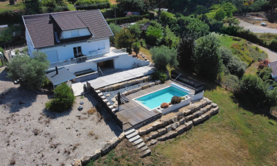 With an open view and south-east exposure this furnished house 193 m² (about 2075 ft²), built in 2008, with a land size of 3337 m² (about 0,82 acres) has 8 rooms including 5 bedrooms, 1 bathroom and 2 toilets. It has dining room, a Fitted kitchen/dining room, a swimming pool, a terrace, a garage, a cellar and 8 parkings. Heating : Individual. Others : fireplace.