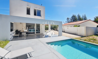 BISCARROSSE GOLF - MAGNIFICIENT WOODEN VILLA In a privileged setting, in absolute tranquility on the edge of the Biscarrosse Golf Course, this magnificent property, inspired by Cap Ferret's signature architecture, perfectly embodies the art of living on the Atlantic coast. Nestled between the lake, ocean, and Arcachon Bay, it offers a unique lifestyle infused with elegance and serenity. Designed for welcoming family and friends in the utmost comfort, the estate comprises a main villa and an independent guest house, seamlessly blending modern comfort with timeless charm. Main Villa From the moment you enter, natural light floods every space. Upstairs, a spacious living area with a cathedral ceiling brings together a lounge, dining area, and open kitchen with a pellet stove, all extending onto generous terraces and a balcony overlooking the landscaped garden. On the ground floor, a beautiful master suite with en-suite shower room and direct terrace access is complemented by three additional bedrooms (one with dressing room) and two shower rooms. A laundry room, wine cellar, and bicycle garage complete this thoughtfully designed space. Guest House Independent and full of charm, it features a welcoming living area with open kitchen, two bedrooms (one opening onto a terrace), and a shared shower room — ideal for hosting family or guests. Outdoor Spaces The beautifully landscaped, private grounds are an invitation to relaxation, with expansive terraces, a heated swimming pool (8 × 4 m), and ample parking areas, all blending harmoniously into the surrounding nature. A rare and elegant address, offering the perfect balance between coastal lifestyle, comfort, and tranquility, in the heart of an exceptional natural environment. - We love: the refined comfort of this family villa, its generous volumes, the timeless charm of its wooden architecture, its inviting terraces, and its beautiful heated pool. Contact : Mr. Jean Alain Nebout +33 618 196 226 for Cap Ferret Pyla Sotheby's International Realty. Prestigious real estate inspiring, experts in luxury properties, Bassin d'Arcachon, from Cap Ferret to Pyla sur Mer. jeanalain.nebout@capferretpylasothebysrealty.com