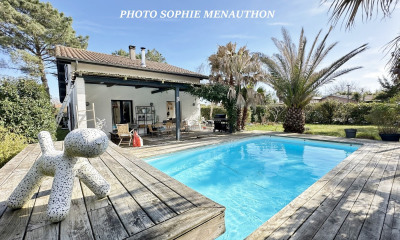 In a quiet environment, with south exposure this house (Luxury villa) 115 m² (about 1236 ft²), built in 2005, with a land size of 911 m² (about 0,23 acres) comprises 4 rooms including 3 bedrooms, 1 bathroom and 2 toilets. It is provided with a living room, with a None, with a swimming pool, with a garage and with 6 parkings. Heating : Individual.