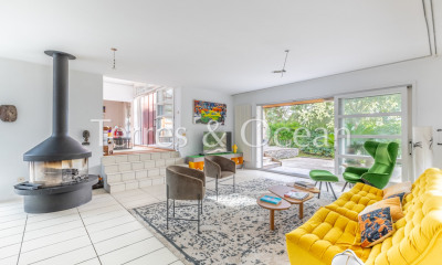 In a quiet environment, this house 200 m² (about 2150 ft²), built in 1965, with a land size of 1140 m² (about 0,28 acres) comprises 7 rooms including 5 bedrooms, 2 bathrooms and 3 toilets. It is provided with a living room, with a Fitted separate kitchen, with a garage, with a cellar and with 4 parkings. Heating : Individual gaz.