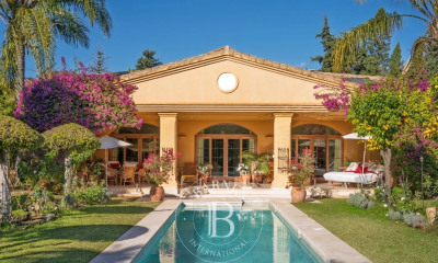 BARNES Madrid is selling this spectacular 950 m² villa located in the Moncloa-Aravaca district, Aravaca neighborhood. This luxurious property blends character, design, and exclusivity. It is accessed through an elegant entrance hall featuring a majestic 18th-century wooden door. The main floor includes a winter lounge, a library with a fireplace, and a dining room with access to a kitchen adorned with Portuguese tiles and century-old terracotta floors. Stairs from here lead to a cozy family room with a full bathroom. The social area also features a reading conservatory and a summer lounge with an integrated kitchen and large windows overlooking the garden. From this space, one accesses the spectacular indoor heated pool, equipped with counter-current system, waterfalls, ornamental rocks, and a lush tropical environment maintained by solar panels. The exclusive home offers 8 bedrooms and 10 bathrooms, including a service area with independent access, auxiliary kitchen, and two bedrooms with bathroom. On the first floor, there is a spacious living room with fireplace, exposed beams, and three en-suite bedrooms, one with a private terrace. The master suite is a grand space with fireplace, two walk-in closets, terrace, and a luxurious double bathroom in sky-blue marble. The garden, designed by renowned landscaper Pedro Lajarín, is a true oasis: featuring an artificial river with waterfalls, a thousand-year-old olive tree, large cedars, Mediterranean pines, and fruit trees. The facades are partially covered with jasmine, wisteria, and ivy that change with the seasons. The property includes a garage for 3 cars, a separate staff apartment with bedroom, bathroom and storage, armored doors in key areas, zoned heating, partial air conditioning, advanced security system, and high-end finishes such as travertine marble, solid wood, and Tunisian mosaics. Available for rent: Daily: €1,500 Monthly: €25,000 Other rental conditions available upon request. For more information, please visit our website: https://www.barnes-madrid.com/en, where you will find a curated selection of exclusive villas in Aravaca, as well as other premium properties in Madrid.
