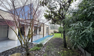 In a quiet environment, with an open view and south-west exposure this house 160 m² (about 1720 ft²), built in 2016, with a land size of 742 m² (about 0,18 acres) contains 7 rooms including 4 bedrooms, 2 bathrooms and 4 toilets. It is equipped with a living room, with a Fitted, with a swimming pool, with a terrace and with a garage. Heating : Gaz underfloor. Fees : 3.