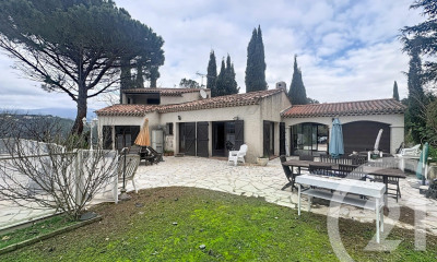 Located in a quiet and sought-after area of Auribeau-sur-Siagne, this 2004 villa offers 120 m² of living space on a flat and beautifully landscaped plot of approximately 1,100 m². Ground floor: A spacious and bright living room with an inset fireplace opens onto the terrace and garden. The kitchen, renovated 5 years ago, is functional and could easily be opened up to the living area for a more contemporary feel. A master suite of 11.5 m² with a dressing room, travertine bathroom, and private toilet completes this level, along with a guest toilet with a window and washbasin. First floor: The first floor comprises two bedrooms (9.30 and 9.60 m²), a shower room, and a separate toilet with a window. Outbuildings: Double garage (interior parking for two vehicles), wine cellar and cellar/laundry room with access to the 2m high crawl space, small converted basement bedroom (1.82m ceiling – ideal office or extra space). Exterior: Enclosed and landscaped grounds of approximately 1,100 m², free-form swimming pool (7.5 x 3.5 m – approx. 21 m²) with chlorine, sand filter and recent liner (4 years old), numerous terraces and relaxation areas. Features: Daikin reversible air conditioning throughout the house, aluminum shutters, mosquito nets, fireplace insert, recently painted living room, renovated facade and exterior. Sale price: euros700,000. Agency fees payable by the seller. Estimated annual energy costs for standard use: between euros850 and euros1,420 per year. Average energy prices indexed to the years 2021, 2022, and 2023 (subscription included). Energy Performance Certificate (EPC): C; Greenhouse Gas Emissions (GHG): B IMMO RESEAU - DESENS Jean Charles Jean Charles - 07 68 96 31 81 - For more information about this property : www.immo-reseau.com (Item 3011442082)