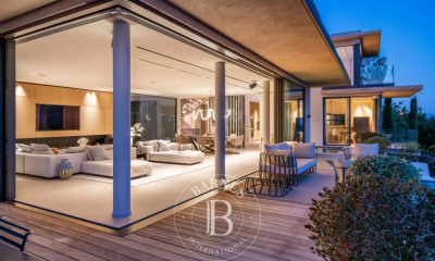 True visual and architectural beauty is this brand new villa, located in the heart of the most exclusive part of the Super Cannes area just 10 minutes drive from Cannes city center. This sumptuous property designed by a talented architect is set-up on 560sqm of very high quality services the whole in an enchanting setting and with its very pretty view of the sea. An interior elevator serves all levels, The flat, beautifully wooded land extends over 2,207sqm with its pleasant swimming pool and petanque court. GROUND FLOOR: - Large entrance hall, toilet and guest cloakroom - Living room, dining room, open kitchen - 2 En-Suite bedrooms 1st FLOOR: - Wide corridor - 2 En-Suite bedrooms - Large master bedroom with 2 walk in closets and a large bathroom as well as a separate toilet GARDEN FLOOR: - 60msqm garage - Laundry room - Cinema room - Fitness room - Indoor swimming pool and sauna