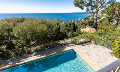 Cap d'Ail Roccamare villa 150 sqm land 780 sqm panoramic sea views pool near Monaco This villa located in Cap d'Ail Roccamare, close to Monaco, offers approximately 150 sqm of living space on a 780 sqm landscaped plot with panoramic sea views. Reception Areas The main level includes an entrance with storage, a fully equipped independent kitchen with dining area, and a spacious living room with dining space opening onto a terrace overlooking the sea. Bedrooms The property offers multiple bedrooms, including one bedroom with en suite shower room on the main level, two additional bedrooms on the garden level, and an independent guest bedroom with its own shower room and toilets. Outdoor Spaces The exterior areas include several terraces, a swimming pool, a jacuzzi and a summer kitchen, all benefiting from open views stretching from Cap Mala to Saint-Jean-Cap-Ferrat. Additional Features The property includes a double garage and benefits from a quiet and residential setting. This villa represents an ideal opportunity for a primary residence, a second home or an investment in close proximity to Monaco. Location Prime location in Cap d'Ail with immediate access to Monaco, beaches and amenities. For further information or to arrange a private viewing, please contact Côte d'Azur Sotheby's International Realty, your expert in Cap d'Ail and Monaco.