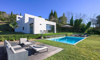 MOUANS SARTOUX : Located just a few minutes' drive from all shops and major roads, on a beautiful flat, wooded plot, this magnificent 280 m² contemporary villa offers 8 main rooms on 3 levels. The garden level features a beautiful entrance hall, a large living room with a high-end open kitchen, a master suite with a dressing room and shower room, and a guest toilet. Upstairs, there are 3 bedrooms, a dressing room, two shower rooms, and a toilet, not to mention a large, deep terrace. The basement offers 3 large rooms to be used as desired and a technical room. A superb swimming pool and 4 parking spaces are available. Agency fees of 5% included, payable by the seller.