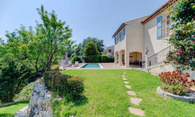 Magnificent Provençal villa with 7 rooms, featuring a swimming pool and a large terrace with sea views. Nestled on a hillside and surrounded by greenery, the property offers a true haven of peace with views of the sea, the charming village of Aspremont, and the surrounding Mediterranean landscape. It is located just 20 minutes by car from the center of Nice and the international airport. On the ground floor, the villa offers a spacious living area comprising a dining room and a living room, both opening onto the terrace and the pool. You will also find a large separate kitchen, fully equipped. On this level, there are also three bright bedrooms, each with direct access to the outdoors, and two beautiful bathrooms. The partially covered terrace seamlessly extends the indoor dining space, offering an ideal setting to enjoy outdoor meals all year round, with an unobstructed view from the pool to the sea. On the 5000 m² plot, there is a fruit tree area, a closed garage, a large cellar, and a vast space capable of accommodating several dozen cars. Upstairs, you will discover two additional bedrooms, a bathroom, and a large playroom that can easily be transformed into an office or guest space. This quality-built house is ideal for a large family or as a secondary residence, perfect for welcoming many guests.