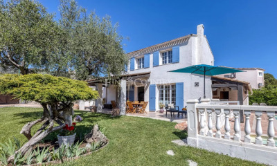 In one of the most sought-after residential areas of La Roquette-sur-Siagne, this elegant property boasts a discreet address, undeniable Provençal charm, and a rare quality of life, designed to combine entertaining, family comfort, and freedom of use. It is a detached house of 223.02 m², arranged over two levels. Behind its inviting silhouette and southern-inspired facades, the house reveals particularly appealing exteriors: a superb, generously proportioned swimming pool, vast, light-filled terraces, several relaxation and entertaining areas, a Mediterranean garden, and a seamless flow between indoors and outdoors. The whole immediately creates that sought-after feeling on the French Riviera: that of a home where one lives as much outside as inside. The main level houses the living areas in a bright and elegant atmosphere, with a living room, dining room, kitchen, laundry room, as well as three bedrooms and a bathroom. The kitchen, already renovated in a contemporary style, blends harmoniously with the living spaces and enhances the property's immediately appealing character. The floor plan confirms this layout, with the upper level featuring a living room, dining room, kitchen, laundry room, and three bedrooms. The garden level adds a particularly valuable dimension in this market segment. It includes a second living room, a kitchenette, two additional bedrooms, two dressing rooms, a shower room, a bathroom, a cellar, a pantry, and a true wellness area with a hammam and jacuzzi. This layout gives the property a rare versatility: a spacious family residence, multigenerational accommodation, guest space, a more independent section for a blended family, or even mixed use with a professional practice or a complementary business. A property that can evolve, adaptable to different lifestyles and development plans. The property will also appeal to buyers who appreciate its potential for development. While retaining its current charm, it still offers considerable scope for customization, allowing for the future creation of a private cinema room, a games room, a gym, or a more exclusive leisure space. Its garden level, already structured and open to the outdoors, lends itself particularly well to such possibilities. This property is therefore aimed at buyers who are looking for much more than just a villa: a place capable of accompanying the evolution of a family, the demands of a life of entertaining, or the implementation of a more ambitious heritage project, in a sought-after residential setting in the hinterland of Cannes.