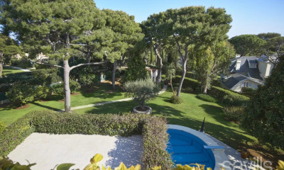 Just a few minutes from the iconic Grand-Hôtel du Cap and the lighthouse, nestled in a lush and peaceful setting, this stunning contemporary villa of approximately 450 m² is set on beautifully landscaped grounds of nearly 2,000 m². Spread over two main levels, the property features an elegant entrance hall, a spacious and bright living room with dining area, a luxurious fully equipped kitchen, an office, and four en-suite bedrooms including a magnificent master suite. All rooms open onto the garden with its superb swimming pool or onto large terraces with beautiful sea views. The lower level includes an independent studio, a fitness room with sauna, a laundry room, a wine cellar, and various technical rooms.