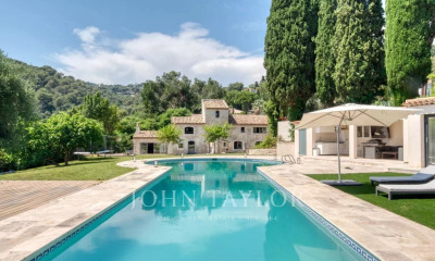 Sole agent Just a short walk from the iconic village of Saint-Paul-de-Vence, this fully renovated stone bastide sits within a beautifully landscaped garden of 2,890 m², blending Provençal charm with modern comfort. The ground floor features an elegant entrance hall opening onto a spacious and light-filled living area with lounge, dining room, fireplace, custom-built bar, and large bay windows leading to the terraces and garden, extending to the pool area. The separate kitchen is fully equipped and complemented by a pantry and laundry room. Upstairs, the master suite includes a bathroom with both tub and shower, along with a dressing room. A second en-suite bedroom with bathtub is also found on this level, together with a self-contained two-room apartment featuring a kitchen, bedroom, dressing room, shower room, and a mezzanine. Two additional bedrooms complete the property, one with a shower room and office area on the mezzanine, the other with its own en-suite shower room. An independent studio with shower room and a wine cellar are also included. The landscaped grounds offer a swimming pool, pool house, summer kitchen, gym, and ample outdoor parking. Energy class: B (107) Climate class: A (3) Estimated annual energy costs: between €2,334 and €3,158. Not part of a co-ownership. Agency fees payable by the seller. Information on the risks to which this property is exposed is available on the Géorisques website: georisques.gouv.fr