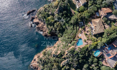REF: 092023-09 With direct access to the sea, in one of the most beautiful natural settings on the Côte d'Azur where the contrast of the red rocks of the Esterel, stand out against the azur seas and natural vegetation, this unique property offers a prized and extremely rare waterfront location. Entirely renovated using high quality materials and simplistic design, allowing the environment and views to take the forefront, the property offers 2 separate villas. The main villa comprises 4 ensuite bedrooms and a wonderful indoor outdoor living and dining space with doors which slide into the walls allowing for the sea breeze to flow freely through the villa and from which to enjoy the fabulous sea views. Infront of the main villa is large terrace space, both covered and uncovered, which then lead down to the swimming pool and garden, and access direct to the sea below, through a small gate. The guest house offers a further 5 ensuite bedrooms, with the possibility to separate it into a gardians apartment and guest house, depending on personal needs. Above the guest house is a petanque court and fruit trees. The property benefits from solar panels (photovoltaic panels) on the roof. Between the two houses is a beautifully paved parking area, for multiple cars, as well as garages for 4 cars.