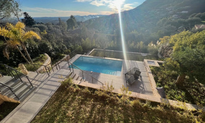 FOR SALE – Charming property in Tourrettes-sur-Loup – 241 m² of living space on a 2,400 m² plot with pool Ideally located on La Colle road, just a few minutes from the heart of the village of Tourrettes-sur-Loup and Vence, this property offers a rare living environment in lush, peaceful surroundings. On a flat, wooded plot of 2,400 m² with pool, this house of about 241 m² living space consists of several distinct areas, allowing for multiple living configurations. Layout: - Garden level: two independent apartments of about 50 m² each, ideal for rentals, welcoming family, or setting up a professional space. - 1st floor: a bright living room, an independent kitchen, two beautiful bedrooms, a bathroom, and a shower room. - Converted attic (2nd floor): a loft space currently used as a reading and storage corner, perfect for an office, remote work, or studio. Outdoors: - The flat, beautifully wooded plot features a large pool, a relaxation area, and offers great landscaping potential. Highlights: - Great family or rental potential - Sought-after natural setting - Rare living area for sale in the sector - Several independent entrances Note: The house, in its original condition, requires modernization work. This is a real asset for buyers wishing to redesign the spaces and amenities to their taste. The estimated renovation budget matches the exceptional nature and potential of the property. A rare opportunity for clients seeking a property with great potential in a privileged living environment on the French Riviera, less than 30 minutes from Nice airport.