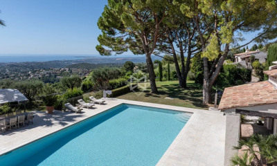In a dominant position, facing south/west, in absolute calm, this sumptuous freestone villa from the 1970s is ideally located in a residential area of Vence, a few minutes walk from the city center. Built on a plot of land of approximately 5000m2, it offers a view of the sea and the entire property, landscaped, planted with Mediterranean species, pines and majestic oaks. Perfectly arranged on approximately 650m2 of living space, the villa consists of: A large reception entrance, a double living room/living room with sea view, 8 bedrooms including the very spacious master bedroom on one level en suite with a large dressing room and bathroom served by a terrace. A high-end dining kitchen. From several offices. For your great fitness, the swimming pool with its jacuzzi, the equipped poolhouse, the clay tennis court coincide with a fitness and spa area. An independent two-room apartment, a wine cellar, a bowling alley, 5 garages, outbuildings, laundry room, complete the villa. The exception confirms the extraordinary...to perfect your receptions, a 'vintage' discotheque is at your disposal!