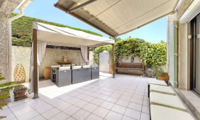 Tucked away in a peaceful green setting, yet just a short walk from the village centre and one of the most sought-after shopping destinations on the coast, this charming and character-filled property welcomes you with warmth and history. Built over three levels, the main floor currently offers a 3-bedroom apartment featuring an elegant living room, a light-filled dining area within a beautiful conservatory, a separate kitchen, three bedrooms, and a bathroom. The lower level, internally connected to the main floor, houses another 3-bedroom apartment, currently configured as a natural medicine practice with a conference room. Entirely independent, the top floor presents a large, open-plan space currently used as a reception hall, which can easily be converted into a separate apartment to suit your needs. Adding to the uniqueness of the property, a charming converted dovecote now serves as a 1-bedroom apartment. The grounds extend over approximately 3,400 sq m (0.84 acres), offering shaded gardens with numerous tranquil spots, a swimming pool, a garage, and parking for around twenty vehicles—creating a truly rare opportunity with exceptional potential.