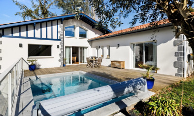 Nestled in the peaceful hills above Villefranque, this contemporary house blends seamlessly into a rare and unspoiled setting, where silence and mountain views create a unique atmosphere. Here, the quality of life is truly exceptional: schools, shops, a medical center, and all amenities are within easy reach, while still maintaining a sense of being immersed in nature. The property is distinguished by its bright architecture and thoughtful layout designed to accommodate different lifestyles. The main house opens onto expansive outdoor spaces: a light-filled living room, extending onto a south-facing terrace, offers a soothing panorama of the surrounding countryside. The separate and functional kitchen also benefits from direct access to the outside. The sleeping area offers four comfortable bedrooms, ideal for accommodating a large family or creating private spaces to suit individual needs. A rare asset completes this exceptional property: a completely independent apartment, ideal for entertaining in complete privacy, creating a workspace, or generating rental income without disturbing the tranquility of the main house. Everyone can find their own rhythm here, without ever feeling intrusive. The carefully designed landscaped garden suggests the possibility of adding a swimming pool to further enhance this idyllic setting. A closed garage, a carport for two cars, underfloor heating, and photovoltaic panels complete the amenities, guaranteeing comfort and modernity. This property offers a subtle harmony between nature, space, light, and independence. A rare find, whose balance and potential are fully revealed during a visit. Agency fees: 4.69% including VAT, payable by the buyer. Price excluding agency fees: euros810,000. PRESTANT Luxury Realty - Marion VIDAL - +33 7 64 86 55 40 - More information at www.prestant.com (ref. 640254083). Information on the risks to which this property is exposed is available on the Georisques website: www.georisques.gouv.fr.