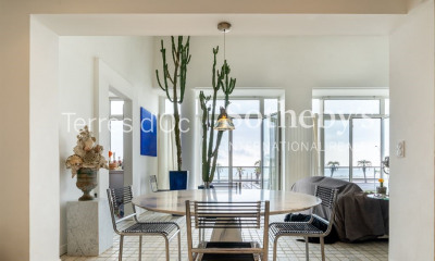 Exceptionally rare : Muchir-designed villa facing the sea, offering an intimate and lush garden on a 500m² plot and approximately 200m² of refined and distinctive style. In addition to its spacious double living room with breathtaking views, 5 bedrooms enjoy the peace and coolness of the garden. Its striking paved floor, impressive ceiling height with cathedral ceilings, high-quality finishes, and a designer double iron staircase—a true centerpiece of the interior architecture—make this residence truly unique. A workshop, storage space, and convenient parking further enhance its livability. This distinctive address blends character, style, and functionality—ideal for a life between the sea and architectural inspiration.