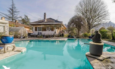 In a quiet environment, with south exposure this house 200 m² (about 2150 ft²), built in 1969, with a land size of 1150 m² (about 0,28 acres) comprises 6 rooms including 4 bedrooms. It is provided with a living room, with dining room, with a Separate kitchen, with a balcony, with a swimming pool, with a terrace, with 3 garages and with a cellar. Heating : Individual gaz radiator.