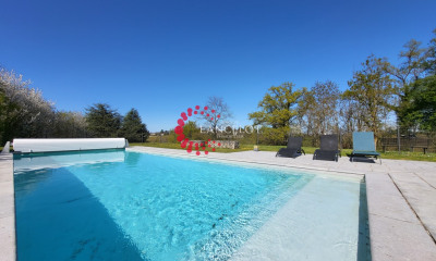 In a quiet environment, with an open view this house 270 m² (about 2902 ft²), built in 1900, with a land size of 4050 m² (about 1,00 acres) comprises 7 rooms including 5 bedrooms, 1 bathroom and 4 toilets. It is provided with a living room, with a Fitted separate kitchen, with a swimming pool, with a cellar and with 6 parkings. Heating : Collective gaz. Others : fireplace.