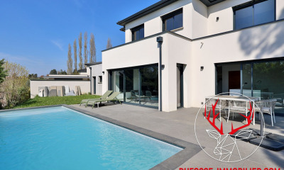 In a quiet environment, with south-east exposure this house (Contemporary house) 145 m² (about 1559 ft²), built in 2026, with a land size of 838 m² (about 0,21 acres) comprises 5 rooms including 4 bedrooms, 1 bathroom and 2 toilets. It is provided with a living room 40 m² (about 430 ft²), with a None, with a swimming pool, with a terrace and with 3 parkings. Others : parquet floor.