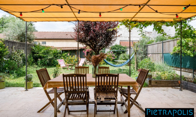 With south exposure this house (Luxury villa) 113 m² (about 1215 ft²), with a land size of 165 m² (about 0,04 acres) contains 4 rooms including 3 bedrooms, 1 bathroom and 2 toilets. It is equipped with a living room, with a None, with a terrace and with a parking lot. Heating : Individual gaz. Others : parquet floor.
