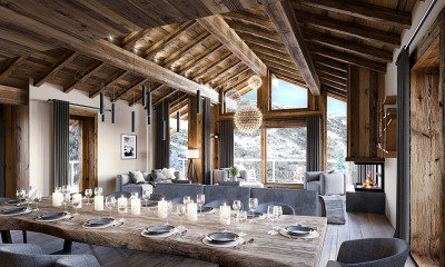 A new development of three chalets in the charming, peaceful hamlet of Villarabout. This hilltop village boasts exceptional views over the valley and its opposite mountainside, as well as ideal south/south-west exposure to make the most of the outdoor spaces in all seasons. Just a 4-minute drive from Saint-Martin-de-Belleville, you'll have access to all the amenities and activities you need for a perfect holiday. This 4- level, 337 sq.m. chalet has 6 bedrooms and a dormitory, all with shower room, and a living area with kitchen, living room and lounge leading onto a large terrace. Services such as a ski room, laundry room, fitness room, sauna and lift complete the modern comforts of this magnificent chalet, while retaining its mountain feel. Sold with 5 basement parking spaces. VAT recovery Non-contractual visuals LAYOUT LEVEL -1 - Parking spaces LEVEL 0 - Entrance - Bedroom with bathroom - Bedroom with shower room - Ski room - Fitness area - Sauna - Laundry room - Technical room LEVEL 1 - 3 bedrooms with shawer room - Dormitary with shower room - Balcony overlooking all bedrooms LEVEL 2 - Kitchen - Dining room - Living room - Terrace LEVEL 3 - Master with shower room - Balcony