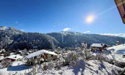 This exceptional 1797 farmhouse, renovated in 1993, beneficit of a panoramic views of Mont Blanc and the surrounding mountains of the Val d'Arly. It will delight those seeking peace and authenticity, with easy year-round access to over 2.5 hectares of land, a 60 m² mazot ready for renovation, a 75 m² detached garage, a beehive, and a bread oven. The property comprises : - Ground floor : an entrance hall, a living/dining room with access to a panoramic terrace, a kitchen, a WC, a bedroom, a bathroom. The former stable, located at the entrance (exterior), is now used for storage. - First floor : a large room with a TV lounge, an office, and a reading area around the wooden fireplace. Two large bedrooms with a shared shower room, a bedroom, a shower room with WC, and a mezzanine bedroom with ample closet space complete this floor. - Basement of 125 m2 : a hallway, a laundry/boiler room, a wine cellar, a workshop, and a garage. The property is supplied by a spring, and heating is provided by a combination of oil, wood, and solar panels. It has a septic tank. The steel roof was replaced in 2005. Located 4 km from the town center and bus stops, and 8.8 km from the ski slopes of the Espace Diamant and Évasion Mont-Blanc ski areas. 16 km from Megève, 44 minutes from Lake Annecy (Angon), and 1 hour 30 minutes from Geneva Airport. To arrange a viewing or for more information, please contact Valérie Sergent – Sales Agent (Individual) – +33 6 27 57 52 46 or by email at vs@tourdeslacs.com
