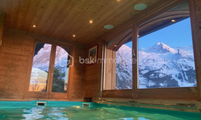 Right next to the slopes and the village, this rare property, renovated in 2018, combines charm, generous volumes and top-of-the-range features, in a warm, contemporary spirit. Made with noble materials and great attention to detail, it offers a remarkable quality of life with a total surface area of 427 m² (of which around 312 m² living space). The chalet features a vast, luminous living area with central fireplace, dining room and open kitchen, extended by a sunny, south-east-facing terrace with jacuzzi, offering panoramic views of the Aravis mountain range. The night space comprises 5 bedrooms, including a superb master suite with bathroom and dressing room, and two further shower rooms. An office, gym and games room complete the space, with potential for further development as required. An independent apartment with 3 bedrooms, 2 shower rooms and 1 bathroom perfectly completes this property, offering an ideal location for entertaining or rental purposes. A unique property combining absolute comfort with top-of-the-range equipment: home automation system, BSO (brise-soleil orientables), plenty of storage space, ski-room, carnotzet, wine cellar, workshop and large garage. Ideal for mountain lovers looking for an exclusive property in La Clusaz. Information on the risks to which this property is exposed is available at https://www.georisques.gouv.fr/