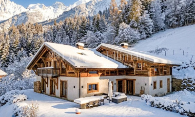 Chamonix Sotheby's International Realty presents Farmhouse Montana, authentically rebuilt in 2020 to preserve the spirit of the original 18th-century farmhouse. With no neighbours, nearly two hectares of land, and a privileged position above the valley, this property offers complete privacy while maintaining quick access to the centre of Les Houches. This authentically beautiful home has been crafted with meticulous attention to detail, the highest quality noble materials, and a layout intelligently designed for maximum comfort. With 476 m2 of habitable space and a 74 m2 garage, the property is arranged over three levels as follows: Ground Floor: Two entrances – a ski room and the main vestibule – lead to over 80 m2 of living space, including a cosy cathedral-style snug separated by an elegant double-sided fireplace, and a refined country-style kitchen opening onto a large dining room. There is also an office, a second kitchen suitable as a private chef's station or utility kitchen, a laundry room, guest WC, and two large en-suite guest bedrooms. First Floor: Featuring spectacular high ceilings with exposed wooden carpentry, large windows, and an open mezzanine with an elegant fireplace, the first floor offers three en-suite bedrooms, each with both shower and bathtub, as well as a small office space. Basement Level: Includes a large versatile room that could serve as a cinema or wellness area, a gym, storage, and a technical room with a highly energy-efficient pellet heating system. Expansive terraces offer complete privacy and panoramic views of Les Aiguilles, Les Fiz mountain range, and the Chamonix valley – perfect for alfresco summer dining or the addition of an outdoor jacuzzi. The nearly two hectares of well-maintained grounds are a rare treasure in the Chamonix valley. A distinguished example of high-end modern construction with authentic character, this property is wonderfully secluded yet exceptionally well connected: Bellevue ski station is just five minutes, Chavants Lake eight minutes, and the centre of Chamonix 15 minutes by car. For more information, please contact Joanna Jurgielewicz at Chamonix Sotheby's International Realty: +33 (0)7 72 44 26 79.
