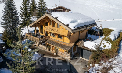 Chalet for sale in Mont-d'Arbois, Megève, fully renovated in 2011/2012, built on 3 levels, with stunning views of the surrounding mountains. 1,390 sq m plot. Comprising: living room with fireplace and fully equipped kitchenette opening onto a large south-facing terrace. Master bedroom with en suite attic space and fireplace, sitting/office area, 3 further en suite bedrooms with access to terrace/garden, wine cellar. Potential for expansion of 60 to 70 sq m. Outdoor parking space in front of the chalet entrance. In a neighboring condominium: 3 covered parking spaces and access to tennis/swimming pool facilities.