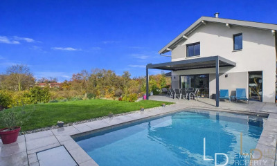 LAC LEMAN SOTHEBY'S INTERNATIONAL REALTY presents : Veigy-Foncenex On the edge of a forest and just steps from the Swiss border, this elegant wooden property is nestled in a peaceful and privileged setting. Set on a 4,540 m² plot featuring a landscaped enclosed garden and a wooded, non-buildable area, this warm and inviting home stands out for its serene ambiance and generous spaces. The property currently comprises two independent apartments that can be easily combined to create a unique family residence. The first unit, approximately 105 m², includes an open kitchen leading into a spacious, light-filled living room, three bedrooms, a bathroom, a shower room, and an entrance with built-in storage. The second apartment, about 130 m², has a similar layout, enhanced by an additional office perfect for remote work or a private practice. Large windows create a strong connection with the surrounding nature and fill the interior with natural light. A rare opportunity offering tranquility, privacy, and immediate proximity to Swiss amenities. LAC LEMAN SOTHEBY'S INTERNATIONAL REALTY YOUR EXPERT IN THE SALE OF LUXURY PROPERTIES AROUND LAKE GENEVA AND ITS SURROUNDINGS.