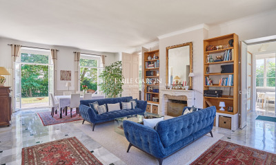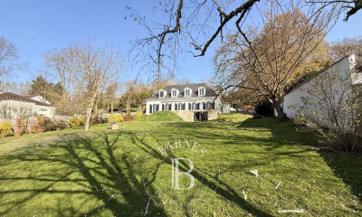 On the outskirts of Louveciennes, this large family villa dating from 1900 offers a spacious living area where everyone can have their own space and move around easily. Large reception rooms, high ceilings and a fireplace are just some of the features that give this property its charm. On the ground floor: a large entrance hall leading to a dining room, a separate kitchen, a small lounge with fireplace opening onto a double living room with access to the garden, and a bedroom with terrace and en-suite shower room. Also on the ground floor, away from the hustle and bustle of the house, is a bedroom with separate access if required, with its own shower room and WC. On the first floor: the landing leads to 3 bedrooms, one currently converted into a dressing room, another facing south/west with access to a large terrace and a large en-suite bathroom (bath, shower and WC), and a third with a bathroom and separate WC. On the second floor: a landing leads to a shower room, a bedroom/attic room, an office, a bedroom with a balcony and an en-suite bathroom. The basement comprises two large storage rooms, utility rooms (boiler room, laundry room), a space to be converted (formerly a doctor's surgery with separate access), a wine cellar and a double garage with automatic door. At the rear of the property is a reception area (formerly a theatre, ideal for receptions or other leisure activities).