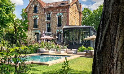 In a quiet environment, with an open view and south-west exposure this house 450 m² (about 4838 ft²), with a land size of 2110 m² (about 0,52 acres) has 11 rooms including 6 bedrooms, 6 bathrooms and 6 toilets. It has a living room, dining room, a Fitted, a swimming pool, a terrace, a cellar and 5 parkings. Totally renovated Heating : Gaz underfloor. Others : fireplace. Fees : 1.8.