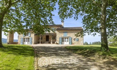 Nestled at the foot of the Montagne Noire, in a peaceful and private setting, this Riviera-style architect-designed residence, built in 1965, sits at the heart of a fully enclosed, landscaped 2.5-hectare park, meticulously designed and planted by a renowned Toulouse-based company, responsible for several prestigious parks in the south of Tarn. Its exceptional location, surrounded by nature, ensures breathtaking panoramic views while remaining in close proximity to local amenities. A Unique and Charming Maison de Maître This elegant south-facing maison de maître, all on one level and offering approximately 400 sqm of living space, combines high-quality features with remarkable comfort. The traditional architecture, crafted from locally shaped stone and concrete rubble, reflects the region's artisanal expertise. Inside, noble materials are showcased, such as the Point de Hongrie parquet flooring found in the grand living room, the lounge, and the main hallway, along with custom-made woodwork and four stunning fireplaces, including a monumental one in the living room, infusing each space with warmth and elegance. The living areas are bathed in exceptional natural light thanks to large sliding pocket doors, providing direct access to the terrace and the park, perfect for outdoor dining. High ceilings throughout enhance the sense of space and comfort. A Refined and Functional Layout The house is thoughtfully organized to combine privacy with conviviality: A vast 80 to 90 sqm living room with a built-in library. A study and a large dining room adorned with bespoke woodwork. A spacious 25 sqm master bedroom with dressing room, boudoir, private bathroom, and WC. Four additional bedrooms in a separate wing, served by three bathrooms and five WCs in total. The design of the house ensures easy, fluid living on a single level. Outstanding Outdoor Features The true highlight of the property lies in its beautifully landscaped and enclosed park, offering uninterrupted views of the Montagne Noire. Here, tranquility, privacy, and natural beauty reign supreme. The 12 x 6-meter swimming pool, featuring a Roman staircase, blends seamlessly into the landscaped surroundings and is secured for safety. The adjacent pool house, complete with a summer lounge and kitchen, provides a perfect space for outdoor entertaining. A spacious, detached garage houses the pool’s technical equipment, and an electric gate secures the property. A Rare and Accessible Lifestyle Setting The property enjoys an ideal location, blending the tranquility of nature with easy access to essential services: Amenities: shops, schools, and local services just minutes away. Transport: New Castres-Toulouse highway under construction, allowing access to Toulouse in under 1h15. Train station with regular connections to Toulouse and other major cities. Castres-Mazamet Airport (15 minutes) and Toulouse-Blagnac Airport (1h15). Just a few minutes away, golf enthusiasts can enjoy a course recognized as one of the oldest and most beautiful in France. Thanks to its generous volumes and thoughtful layout, this residence will appeal equally to families seeking an exceptional living environment and to those envisioning a tourist accommodation project (such as a bed and breakfast or guesthouse), with the possibility to create an independent wing for guests or clients.