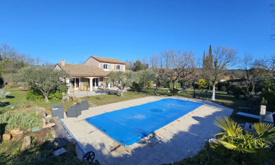 Beauchamp Estates Exclusive Nestled at the end of a quiet rock landscaping , this charming 5-room villa is located within a private estate. The landscaped 1,581 sqm plot offers both peace and privacy. The ground floor features a bright 55 sqm living room, a high-end kitchen, and a master suite with a bathroom and direct access to the terrace. Upstairs, the night area includes three spacious bedrooms with built-in wardrobes and a bathroom. The south-facing terrace opens onto a heated saltwater pool (10 x 5 m), surrounded by beautifully designed rock landscaping. The villa is equipped with reversible air conditioning, fibre-optic internet, an alarm system, and a garage with a 24 kW charging station. An elegant, practical, and serene property located in a sought-after area of the Upper Var. Energy rating: B (99 kWh) – Climate rating: A (3 kg) / Estimated annual energy expenses for standard use: between €950 and €1,360 (reference year 2026). Information on the risks to which this property is exposed is available on the Géorisques website: georisques.gouv.fr.