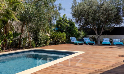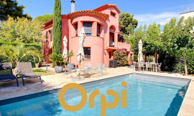 With south exposure this house 177 m² (about 1903 ft²), built in 2018, with a land size of 700 m² (about 0,17 acres) contains 9 rooms including 6 bedrooms and 4 toilets. It is equipped with a living room, with a Fitted kitchen/dining room, with a swimming pool, with a terrace, with a garage and with 5 parkings. Heating : Individual.