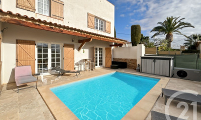With an open view and south exposure this house (Luxury villa) 165 m² (about 1774 ft²), built in 2022, with a land size of 295 m² (about 0,07 acres) contains 7 rooms including 3 bedrooms and 3 toilets. It is equipped with a living room 67 m² (about 720 ft²), with dining room, with a Fitted kitchen/dining room, with a swimming pool, with a terrace, with a garage and with 4 parkings. Heating : Individual. Fees : 4.