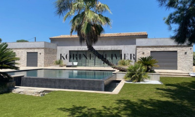 Modern Provençal Mas with Guest House and Expansive Landscaped Grounds – Near Cogolin Set in a peaceful environment close to Cogolin, this magnificent modernised Provençal mas combines authentic charm with contemporary comfort. Nestled within extensive grounds and accessed via a private lane, the property offers a lush, secluded setting – perfect for enjoying the Mediterranean climate. From the moment you arrive, your gaze is drawn to the beautifully landscaped garden, planted with a variety of local species. Several terraces invite relaxation and conviviality, while a lovely swimming pool blends harmoniously into the scenery, complete with a fully equipped pool house. Multiple outdoor areas have been designed for convenience and comfort, including discreet storage spaces, ample parking, and a covered carport. The main house impresses with its generous volumes and natural light. The entrance opens into a large, dual-aspect living room with a cathedral ceiling and a stone fireplace that lends warmth and character to the space. The separate, fully fitted kitchen combines elegance and functionality. The ground floor also includes a guest WC, a utility/laundry room, two bedrooms sharing a shower room, and a spacious master suite with its own bathroom and direct access to the garden. Upstairs, a charming mezzanine overlooks the living area and serves as a study or reading corner, while an additional ensuite bedroom completes this level. Connected to the main house via an elegant archway, a former outbuilding has been completely redesigned and rebuilt in keeping with the Provençal architecture. This independent guest house offers two bedrooms, a welcoming living area with an open-plan kitchen, and a modern shower room – ideal for hosting guests, accommodating family, or generating seasonal rental income. The entire property exudes a serene, harmonious atmosphere typical of the South of France, while benefiting from modern amenities and a layout optimised for everyday living. This property is presented by our Grimaud agency. Information on the risks to which this property is exposed is available on the Géorisques website: www.georisques.gouv.fr In accordance with current regulations, the DPE surface area for this property has been established using standardised measurements of the habitable space. This measurement may differ from the total surface area precisely measured by our commercial teams.