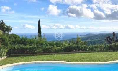 In a private, secure estate in the hills above GIGARO... Set on 1,412m² of land, this charming Provençal property welcomes you with approximately 160m² of living space... On the main level: an entrance hall with separate toilet, a living/dining room with open-plan fitted kitchen opening onto a terrace and a loggia, 1 large bedroom with numerous cupboards, a freestanding bathtub and sink... The first floor consists of a mezzanine converted into a sleeping area... In the basement, there is a second living room, one bedroom with shower room and terrace access, two bedrooms, one with a dressing area, one bathroom with a large walk-in shower and double sink, and a laundry room. Outside: Swimming pool Terraces Landscaped garden Garage with electric roller shutter Quiet property nestled in a green setting just a few minutes from GIGARO beach, not overlooked and in perfect condition! Contact Emma STEFANIDES 0615753865/estefanides@rivimo.com 919926477 (EI) RCS FREJUS - Information on the risks to which this property is exposed is available on the Géorisques website: georisques.gouv.fr