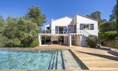 Located in a sought-after neighborhood halfway between Débarquent Beach and the village of La Croix-Valmer, this 1,255-square-foot ocean-view villa, set on a 1,453-square-foot lot, welcomes you on the ground floor with an entryway leading to a spacious living area featuring a fireplace and a fully equipped kitchen, all opening onto a covered terrace with ocean views. This level is completed by 3 bedrooms with built-in closets, 1 bathroom featuring a walk-in shower, double sinks, and a wall-mounted toilet, as well as a separate half-bath with a sink. The upper level, dedicated to the master suite, consists of a 16.5 m² bedroom, a balcony with ocean views, and a shower room with a toilet. Set below the main level and shielded from view, the free-form pool and terraces enjoy sunlight until late in the day thanks to their south-west exposure. Beautiful garden - Recently renovated villa - Reversible air conditioning - On-site parking available - Quiet villa at the end of a cul-de-sac. Contact Emma STEFANIDES 06.15.75.38.65 / estefanides@rivimo.com (EI) RCS FREJUS 919926477 - Information on the risks associated with this property is available on the Georisques website: georisques.gouv.fr
