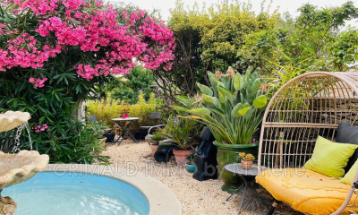 EXCLUSIVE OFFER Just 2 minutes from the village, panoramic views of the Gulf of Saint-Tropez for this well-maintained Provencal house of 140 m². High ceilings in the living room with a fireplace, independent equipped kitchen, pantry, 3 bedrooms, 1 office, 1 shower room, 1 bathroom, covered terraces, infinity pool overlooking the view. Air conditioning, town water, and well. Nearly 3800 m² of fenced and landscaped land. Opportunity to acquire the neighboring property of 80 m² on 4800 m² with pool, requiring renovation, offered at 550,000 euros including agency fees.