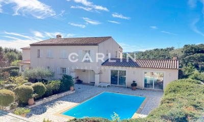 Exclusive villa with breathtaking sea views – Domaine Bartole de Beauvallon Nestled in the prestigious and secure Domaine Bartole de Beauvallon, between Sainte-Maxime and Port Grimaud, this exceptional villa offers an unparalleled lifestyle in the heart of the Bay of Saint-Tropez. Surrounded by lush greenery and beautifully landscaped gardens, the property enjoys absolute privacy while being just minutes from the vibrant life of the Côte d’Azur. Designed by renowned architect René Claude Leandri, the villa is perfectly positioned on a gentle hillside, offering panoramic views of the Gulf of Saint-Tropez. Large floor-to-ceiling windows seamlessly connect the indoor and outdoor spaces, flooding the interiors with natural light. The expansive terraces and infinity pool with integrated jacuzzi provide an idyllic setting to relax and take in the spectacular scenery. Inside, 608 m² of living and usable space are spread across two levels. The elegant living room with a fireplace opens onto a spacious dining area and an open-plan kitchen, leading to a terrace perfect for enjoying sunrises over the sea. The villa boasts five luxurious bedrooms, each with a private en-suite bathroom and terrace, ensuring comfort and privacy for residents and guests alike. Additional highlights include: ? 3,036 m² plot with mature trees and Mediterranean landscaping ? High-end construction with reinforced concrete, natural stone, and premium materials ? Infinity pool with jacuzzi and expansive poolside terrace ? Double garage and 3 additional parking spaces ? Underfloor heating, air conditioning, marble bathrooms, and smart home technology This rare and harmoniously designed villa is a true sanctuary of elegance and tranquility, offering the perfect blend of luxury and Provençal charm. A dream home in one of the most coveted locations on the French Riviera. Information about risks: Details regarding the risks to which this property is exposed are available on the Géorisques website: www.georisques.gouv.fr.