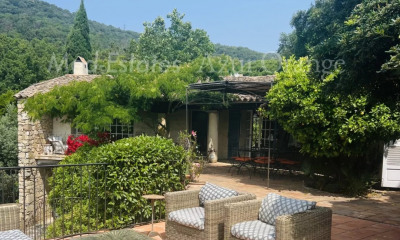 Land 1,000m2 - villa approximately 275m2 - 4 bedrooms - 4 bathrooms. Grimaud Guerrevieille, in a quiet area, just 200m walk from the beach, this villa of approximately 275m2 consists of an entrance with living/dining room and open kitchen area, 4 bedrooms and 4 bathrooms, laundry room. Outside, a swimming pool with terrace, garden of 1,000m2. A garage, several parking spaces and an independent apartment complete this property.