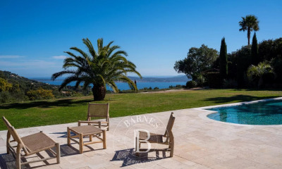 This character villa on the outskirts of the charming village of Grimaud, with a breathtaking view of the château, offers a wealth of features. The immediate proximity of the village and château means that all amenities are within walking distance, a real luxury in this sought-after region of the Côte d'Azur. Built on 2 levels, this property boasts a spacious living area of approx. 100m2, comprising an open-plan kitchen, living room and dining room overlooking the terrace and swimming pool. On the first floor, there's a winter lounge with fireplace, a master bedroom with bathroom, dressing room and toilet, a children's bedroom with shower room, a third bedroom, an office and a laundry room. The upper floor features a master suite with bathroom and dressing room, 2 bedrooms and a shower room with toilet. The wine cellar is also an asset for wine lovers. The villa's decor is meticulous, the materials used are of the highest quality, and the verdant garden is a haven of peace. The grounds of around 2000m2 also boast a beautiful swimming pool and a pétanque court. A large garage of approx. 100m2 completes the villa. All in all, this property is an invitation to travel and relax, ideal for a family or seasonal rental investment.