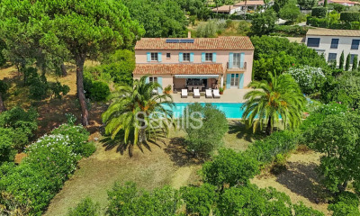 Close to Saint-Tropez, located in a private estate in Grimaud, charming Provençal house of approximately 230 sqm on a plot of 3,170 sqm enjoying beautiful sea views and a very peaceful setting. Built on two levels, the house comprises a living room opening onto large terraces with sea views, a kitchen, as well as 6 bedrooms and 4 bathrooms. Heated swimming pool. Potential for extension.