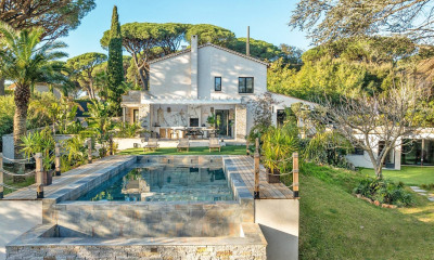 Close to Saint-Tropez, located within a private and secure estate in Grimaud, this charming Provençal house of approximately 200 sqm is set on a 2,500 sqm plot. The property enjoys absolute peace and quiet as well as a magnificent panoramic view over the sea and the village of Saint-Tropez. On the ground floor, the house features an entrance hall, an open-plan kitchen leading onto a large covered terrace, and a very bright living room opening onto the outdoors. Two bedrooms, each with its own bathroom, complete this level. Upstairs, the master suite benefits from a beautiful terrace with sea views and its own bathroom. Two additional en-suite bedrooms, also enjoying sea views, complete the sleeping area. Facing the sea, the garden offers a heated swimming pool, a pétanque court and several terraces ideal for relaxing. A closed garage for two cars, a laundry room and a cellar complete the property. Two additional parking spaces are also available. Well located in an area subject to mandatory brush clearing. “Information about the risks to which this property is exposed is available on the Géorisques website: www.georisques.gouv.fr.”